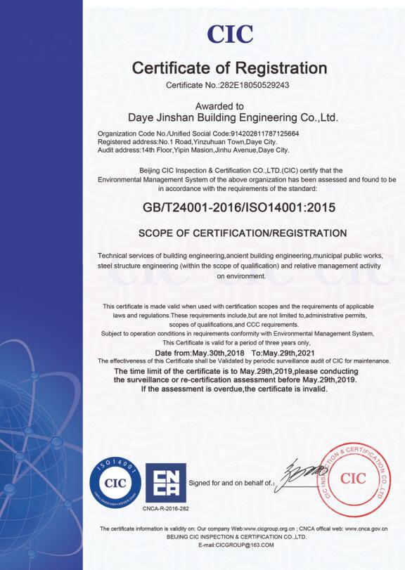 大冶金山建筑工程有限公司是一家專業(yè)從事建筑安裝總承包、園林古建筑、園林綠化景觀工程、文物修繕、市政道路工程、鋼結構工程等綜合型施工企業(yè),公司具有資本投資運營合作實力。